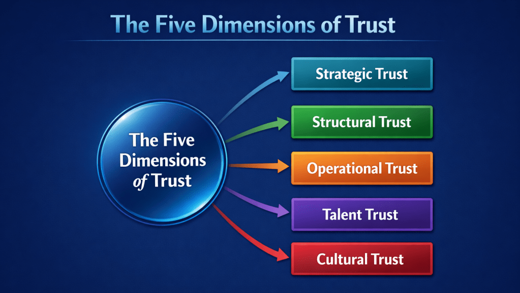 It treats trust as a strategic input designed into how decisions are made, work is executed, and accountability is held.